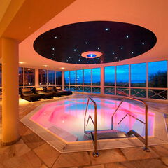 Der große Whirlpool lädt mit seinem warmen, sprudelnden Wasser gerade in der kühleren Jahreszeit zum Erholen ein. Die Wassertemperatur beträgt ca. 28°C. Der Pool hat ca. 20 m² Wasserfläche und verwöhnt mit Massagedüsen, Sitzsprudelanlage und Wildquell.